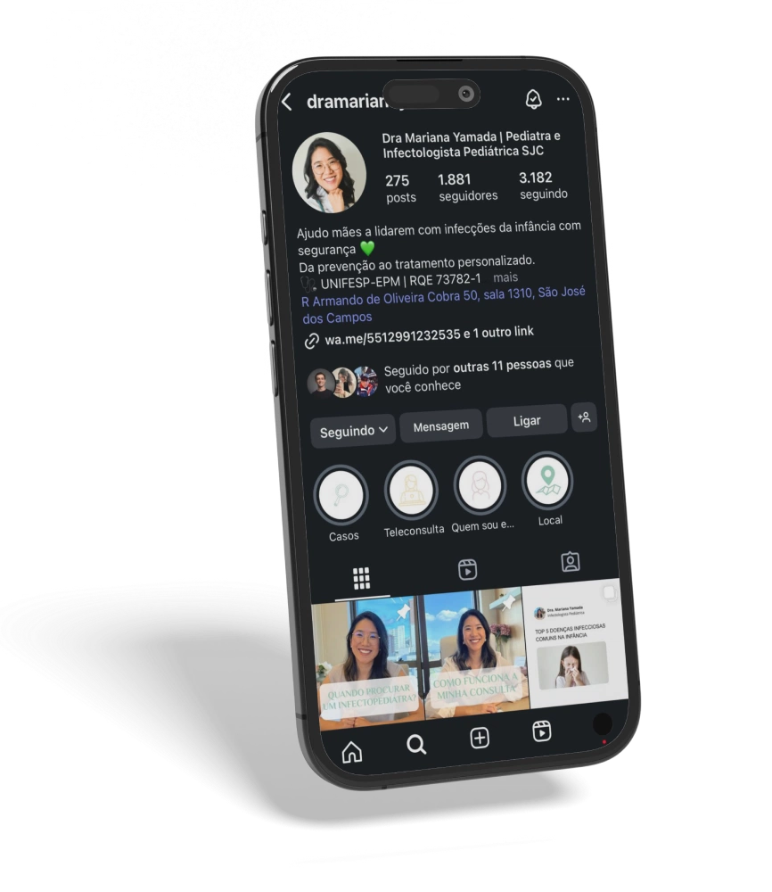 Dra Mariana Yamada, Pediatra e Infectologista Pediátrica, São José dos Campos - SP 20 avaliações no GooglePublicado em Tharome Cosmeticos02/10/2025Trustindex verifica se a fonte original da avaliação é Google. Dra Mariana é a melhor pediatra que já fomos! Muito gentil, paciente, amorosa, e extremamente competente! Cuidou muito bem do nosso menino.Publicado em Karen Anne Raposo23/07/2025Trustindex verifica se a fonte original da avaliação é Google. Dra Mariana foi muito atenciosa conosco, passou as informações de forma clara, é uma médica atualizada e super acessível!Publicado em Tamires Favoretto03/06/2025Trustindex verifica se a fonte original da avaliação é Google. Dra Mariana examinou com cuidado meu filho e explicou com clareza sobre a condição de saúde que nos motivou a procurá-la. Além de uma ótima profissional é muito simpática também, tanto com as crianças quanto com os pais. Super recomendo.Publicado em Raisa Maia22/05/2025Trustindex verifica se a fonte original da avaliação é Google. Dra Mariana foi excelente, super atenciosa respondeu com clareza e informação as minhas dúvidas. Cuidou muito bem da minha bebê.Publicado em Helena Rangel Esper13/05/2025Trustindex verifica se a fonte original da avaliação é Google. Trabalhei com a Dra Mariana por muitos anos e ela é A médica que entro em contato quando a coisa aperta com a minha filha de 4 anos! Hoje ela a atendeu e foi brilhante, trazendo calma e tranquilidade para a toda a família! Sou da mesma área, porém sua confiança me dá completa segurança! Ética, respeitosa e carinhosa, profissional impecável! Recomendo fortemente essa Pediatra e especialista em doenças infecciosas!Publicado em Letícia Oyama13/05/2025Trustindex verifica se a fonte original da avaliação é Google. Procurei atendimento médico para minha filha, que apresentava sintomas preocupantes e de difícil identificação. A médica demonstrou um olhar clínico aguçado e, com escuta atenta e exame criterioso, levantou hipóteses certeiras desde os primeiros minutos. Graças à sua agilidade e precisão, o diagnóstico foi feito de forma rápida e iniciamos o tratamento sem demora, o que foi essencial para a recuperação da minha filha. Sou profundamente grata pelo profissionalismo, empatia e competência. Profissionais como ela fazem toda a diferença na vida das famílias!Publicado em leticia floriano09/05/2025Trustindex verifica se a fonte original da avaliação é Google. Médica maravilhosa e atenciosaCertificado: TrustindexO selo verificado do Trustindex é o Símbolo Universal de Confiança. Apenas as melhores empresas podem obter o selo verificado que tem uma pontuação de avaliação acima de 4.5, com base nas avaliações dos clientes nos últimos 12 meses. Leia mais